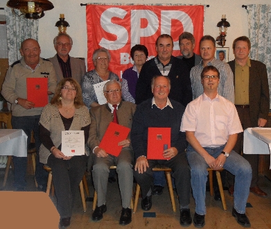 Geehrt wurden folgende Mitglieder: für 10 Jahre: Werner Schwarzensteiner; für 20 Jahre: Anneliese Anlauf, Irene Scheibenthaler, Stefan Diewald, Roland Peschke; für 25 Jahre: Walter Schneider, Gerda Peschke, Ralf Rademacher, Georg Pflügl, für 40 Jahre. Katharina Scheibenthaler; für 50 Jahre: Anna Obermeier, Xaver Diewald .